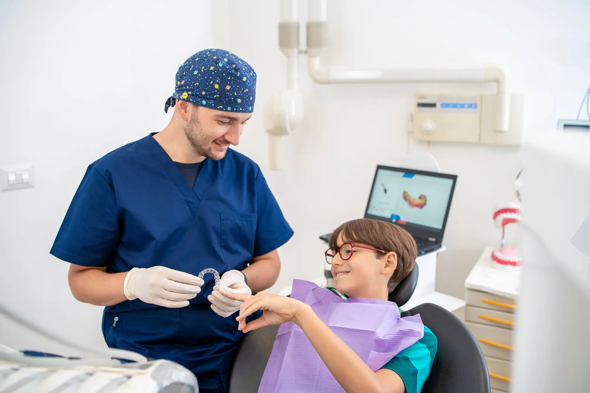 In alternativa agli apparecchi tradizionali, in alcuni casi selezionati è possibile utilizzare allineatori trasparenti anche in età pediatrica o adolescenziale.